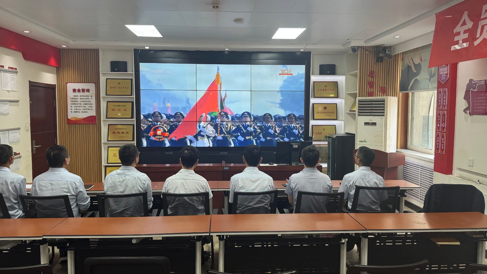 歷史燭照未來,精神永續(xù)傳承。為深切緬懷在抗日戰(zhàn)爭中英勇獻身的革命先烈,大力弘揚偉大的抗戰(zhàn)精神,引導全體黨員、職工銘記光輝歷史、堅定理想信念、強化責任擔當,9月3日,機運工區(qū)黨支部組織開展了“銘記歷史偉業(yè),傳承紅色基因”主題黨日活動,組織全體黨員集中觀看紀念中國人民抗日戰(zhàn)爭暨世界反法西斯戰(zhàn)爭勝利80周年閱兵儀式現場直播。上午九時整,機運工區(qū)全體黨懷著無比崇敬與激動的心情,目光齊聚屏幕。伴隨著激昂雄壯的國歌奏響,鮮艷的五星紅旗在天安門廣場冉冉升起,大家心潮澎湃,肅然起敬。隨后,規(guī)模宏大、氣勢磅礴的閱兵式正式開始。屏幕上,一個個整齊劃一、威武雄壯的徒步方隊,邁著鏗鏘有力、撼人心魄的步伐走過檢閱臺,堅毅的眼神、挺拔的身姿,充分展現了新時代軍人聽黨指揮的忠誠品格和能打勝仗的過硬本領;一列列代表著國家科技實力與國防現代化建設最新成果的裝備方隊,鐵流滾滾,氣勢如虹,尖端武器依次亮相,彰顯了捍衛(wèi)國家主權、安全、發(fā)展利益的堅定決心與強大能力;雄鷹呼嘯,劃破長空,戰(zhàn)機編隊以精準的隊形和磅礴的氣勢接受檢閱,描繪出壯美的藍天畫卷,宣示著捍衛(wèi)國家領空安全的鋼鐵意志。整個閱兵過程,秩序井然、威武雄壯、氣勢恢宏,生動詮釋了人民軍隊“聽黨指揮、能打勝仗、作風優(yōu)良”的強軍目標,全方位展示了在黨的堅強領導下,國家日益強大的綜合國力和維護世界和平的堅定信念。屏幕前,黨員們全神貫注,無不被這震撼人心的場面所感染,民族自豪感與榮譽感油然而生,現場不時響起由衷的贊嘆和熱烈的掌聲。通過本次“銘記歷史偉業(yè),傳承紅色基因”主題黨日活動,機運工區(qū)黨支部全體黨員經歷了一次深刻的精神淬煉與思想升華。大家的歷史使命感、民族自豪感、崗位責任感得到顯著增強,紛紛表示以更加飽滿昂揚的精神狀態(tài)、更加求真務實的工作作風、更加開拓創(chuàng)新的進取意識,恪盡職守,銳意進取,全力以赴保障原煤運輸安全高效,為工區(qū)及公司的持續(xù)高質量發(fā)展貢獻全部力量!